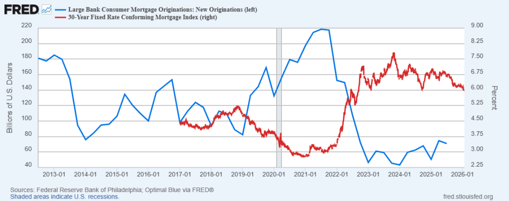 The effect on mortgage rates has so far has been negligible. The 30-year conforming mortgage just fell below 6% at 5.99%.