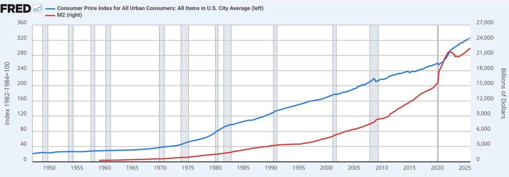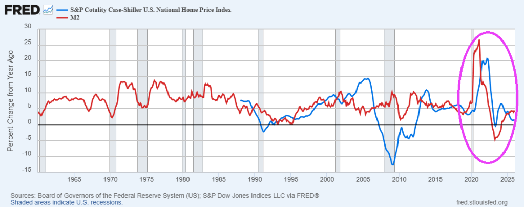 The Fed has been printing money (M2) like there is no tomorrow. With M2 growing at 4.6% YoY in December.