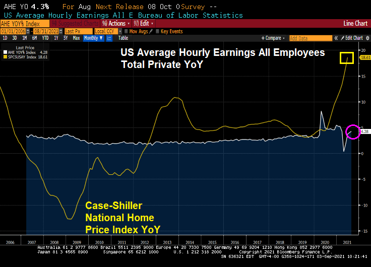 The good news? US Average Hourly Earnings All Employees Total Private YoY rose to 4.28%! The bad news? US home prices are rising at a 18.61% pace.
