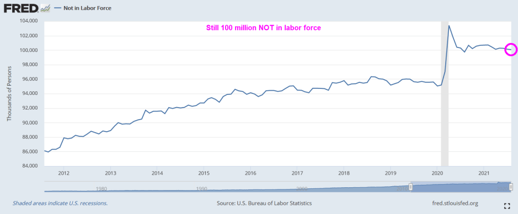 There are still over 100 million NOT in the labor force, higher than pre-Covid.