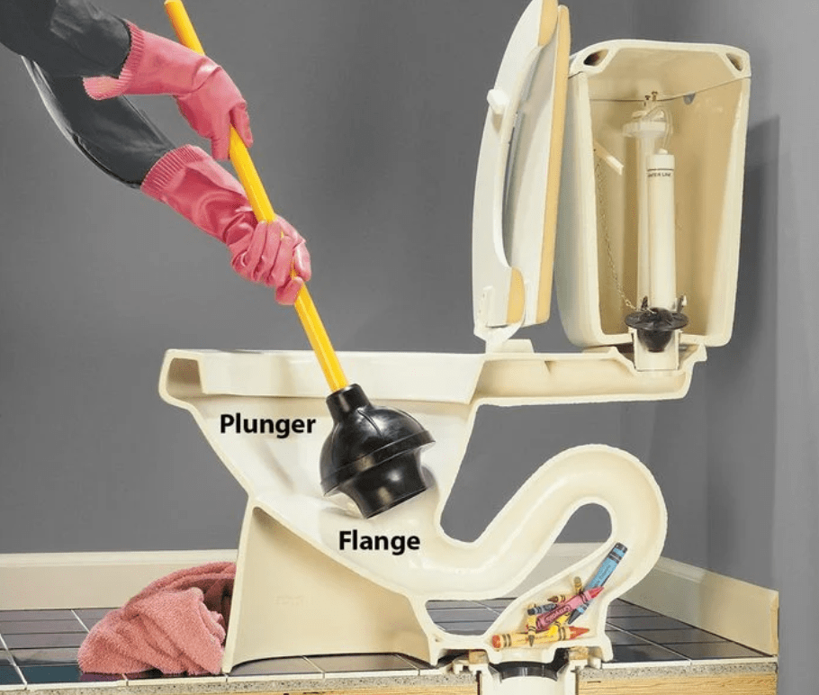 The correct way to clear a clogged economic toilet.