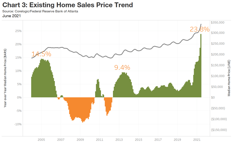 - Home sale prices were up 23.8 percent over the past year.