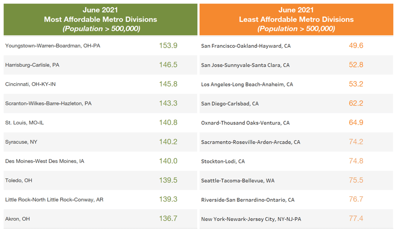 Where is housing most and least affordable?