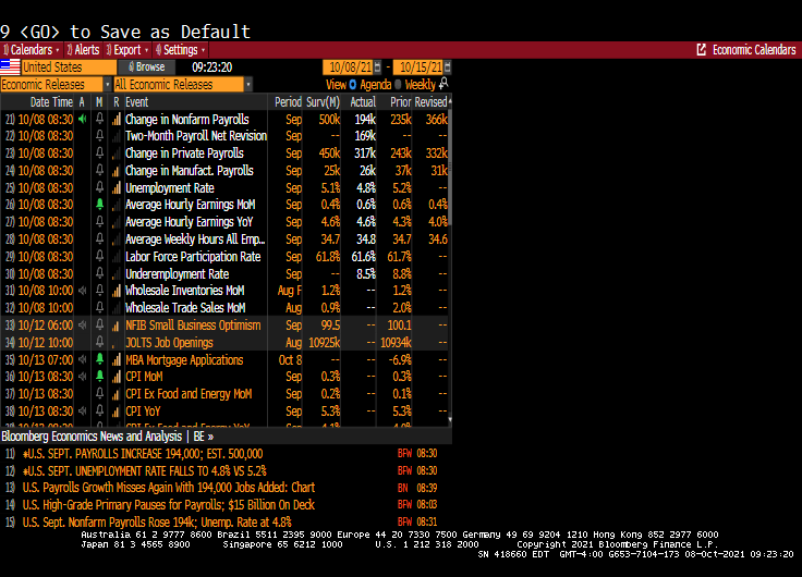 The U.S. economy added fewer jobs than forecast for a second straight month in September. Nonfarm payrolls increased by just 194,000 last month after an upwardly revised 366,000 gain in August, Labor Department figures showed Friday. 500K was expected.