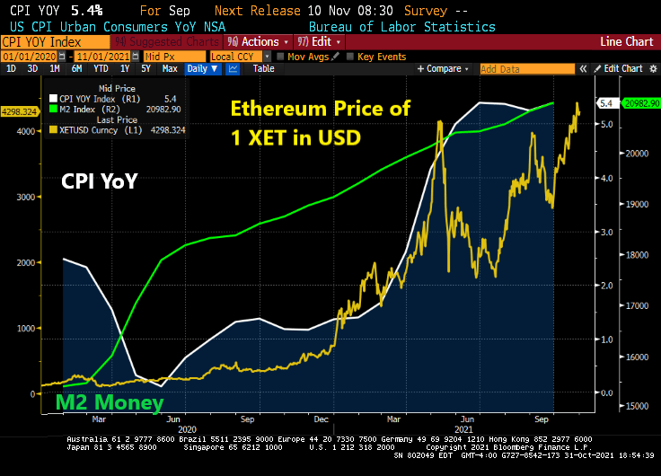 Ethererum, the cryptocurrency, is now at $4,298. It under $200 as the Covid crisis took shape in March 2020. Since Covid, The Federal Reserve went loco and massively increased their money supply and asset purchases. With that response (and economic bottlenecks), inflation has increased to 5.4% YoY.