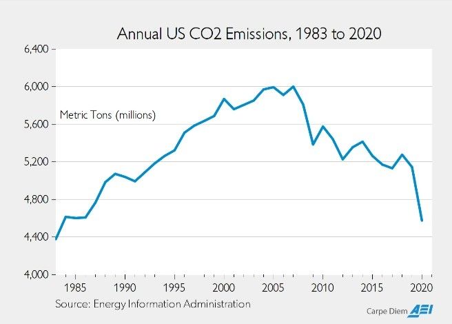 Odd, since annual CO2 emissions have declined significantly from 2007 levels.