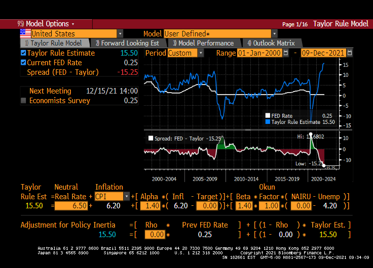 But The Fed’s upcoming decision on December 15, 2021 may be a Yellen-pivot (taper balance sheet, but raise The Fed Funds Target rate). But, then again, maybe not. The Fed is getting really bad about forward guidance and choose instead to surprise us. Hence, this is why an a-political rule is preferred (such as the Taylor Rule).