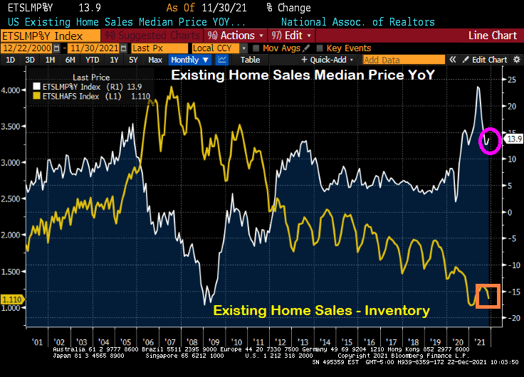 While the Bureau of Labor Statistics uses a lame measure of house price inflation, US existing home sales MEDIAN PRICE YoY is growing at 13.9%.