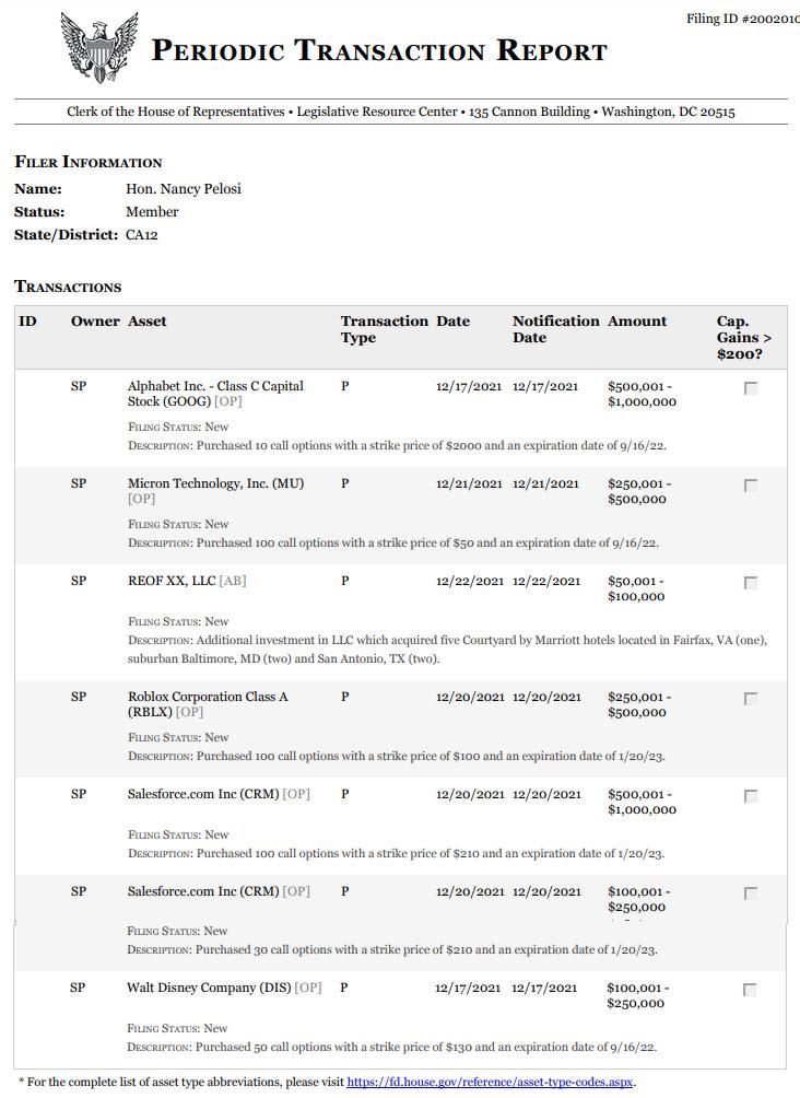 Largely, her investments were in call options for Disney, Saleforce, Roblox, Micron and Google (Alphabet).
