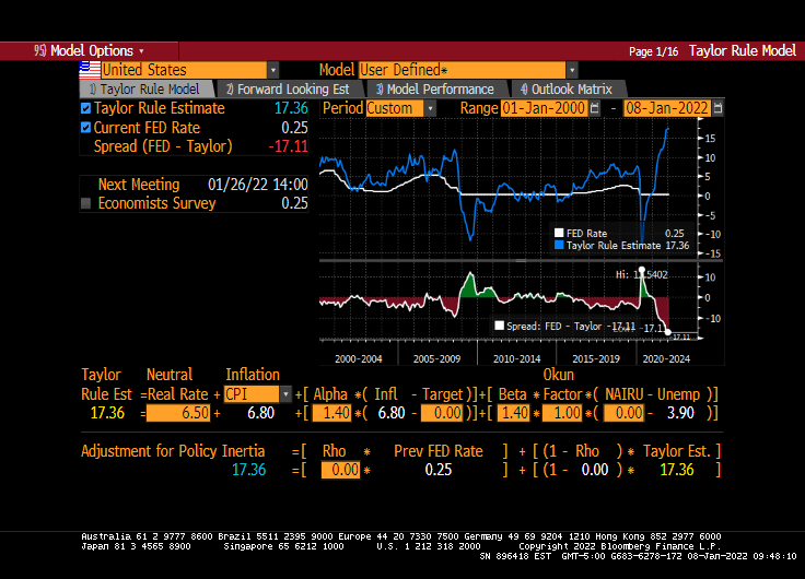 It is somewhat mystifying that markets would be soooooo sensitive to 3 rate increases from The Fed, particularly since the Taylor Rule suggests that The Fed’s target rate should be 17.36%. Even if you don’t like the Taylor Rule or disagree with its inputs, you must admit that the gap between where The Fed is (0.25%) and where they should be (17.36%) is … k-razy.