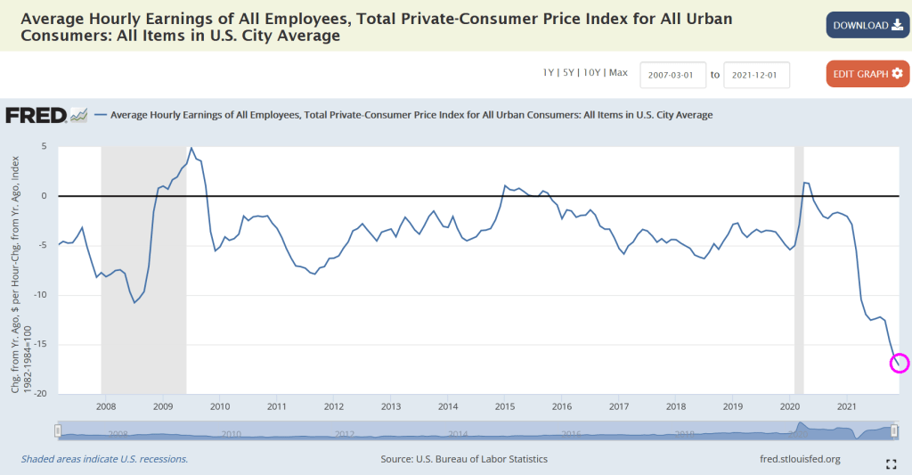 The sad part is that inflation-adjusted average hourly earnings growth of all employees is crashing thanks to inflation.