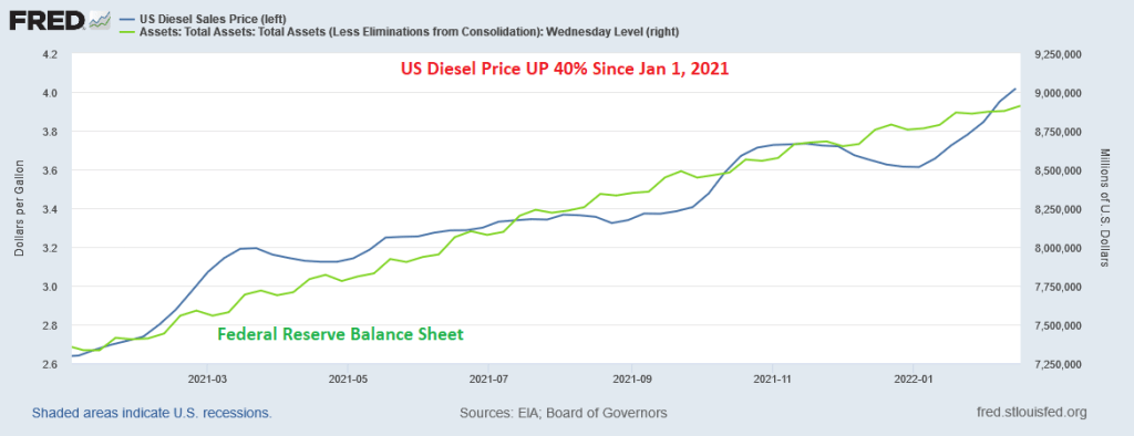 How about diesel fuel prices? They are UP 40% since January 1, 2021.