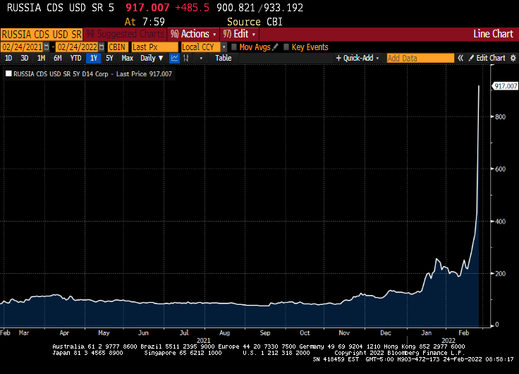One thought on “Putinesca! European Markets Tank, Energy Prices Explode, US 10Y Treasury Yields Plunge 13.3 BPS After Russia Invades Ukraine (Russian 5Y CDS Soars To 917)”