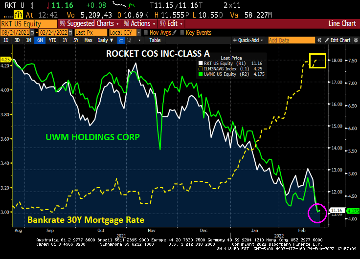 3 thoughts on “Rocket And United Wholesale Mortgage Equity Drop To All-time Low On Fed Tightening (Despite Ukraine, Fed Looks To Keep Tightening)”