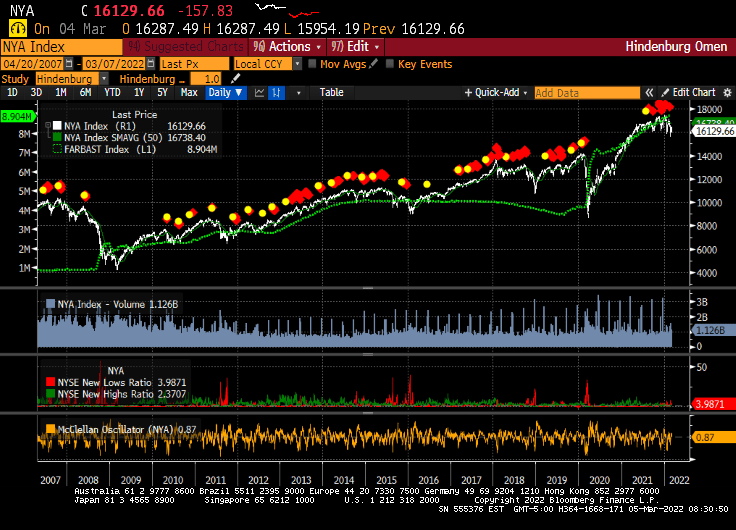 And just for amusement, I present to you the infamous Hindenburg Omen chart that forecast the 2008/2009 stock market correction. Since that correction, the Hindenburg Omen has been flashing “danger” but the only correction was the COVID-linked correction of early 2020. While the Hindenburg Omen is flashing red right now, The Federal Reserve’s balance sheet (green line) has protected against market corrections. Let’s see what happens if and when The Fed decides to remove the epic monetary stimulus.