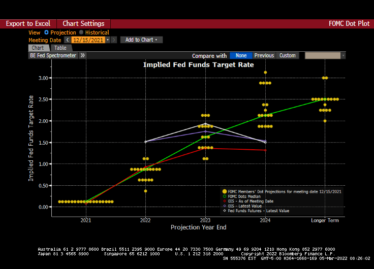 And we have the next Fed policy error on March 16th. The Fed dots plot looks like the glide slope for an aircraft, but the message is that rates will be going up at future meetings.