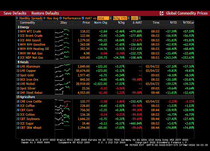Energy prices are still soaring with UK Natural Gas prices up another 34.70% today with Brent Crude futures up 3.34%. Wheat futures are up 7.03%.