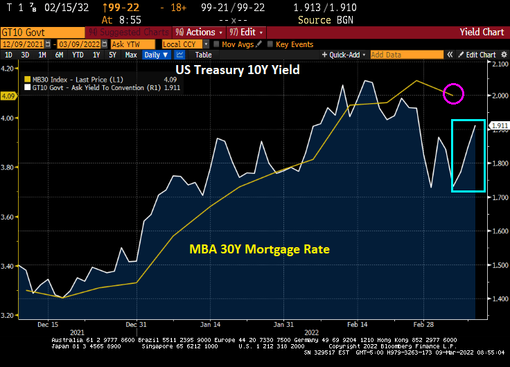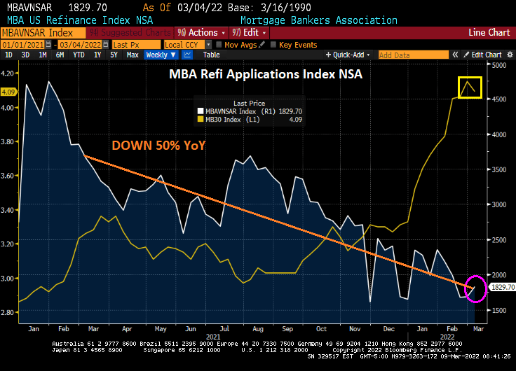 Bear in mind that the US Treasury 10-year yield is up since the MBA’s reporting week ended on March 4, 2022. So, look for Olick’s mini-refi boom to end as quickly as it started.