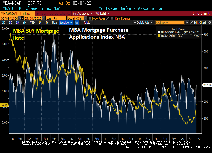 5 thoughts on “MBA Mortgage Purchase Applications Rise 11%, Refi Applications Rise 9% From Previous Week, But Refi Apps Still Down 50% From Same Week Last Year (10Y-2Y Treasury Curve Continues To Flatten)”