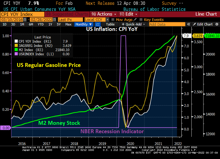As expected, US inflation soared to 7.9% YoY in February as gasoline prices continue climbing.
