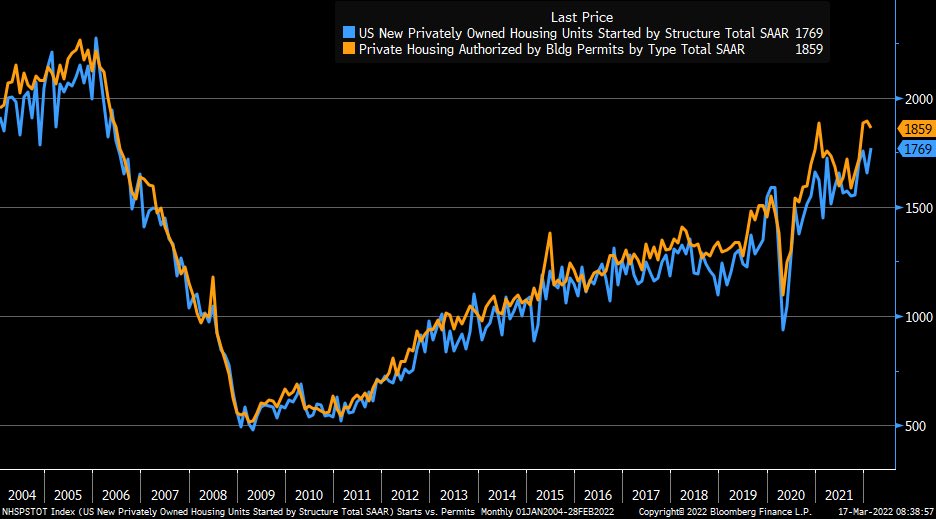 With negative REAL mortgage rates (and continued Fed Stimulypto), we saw February housing starts rise 6.8% in February.