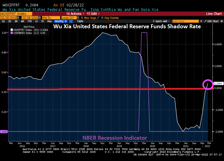 The Wu Xia United States Federal Reserve Funds Shadow Rate has finally climbed back into positive territory.