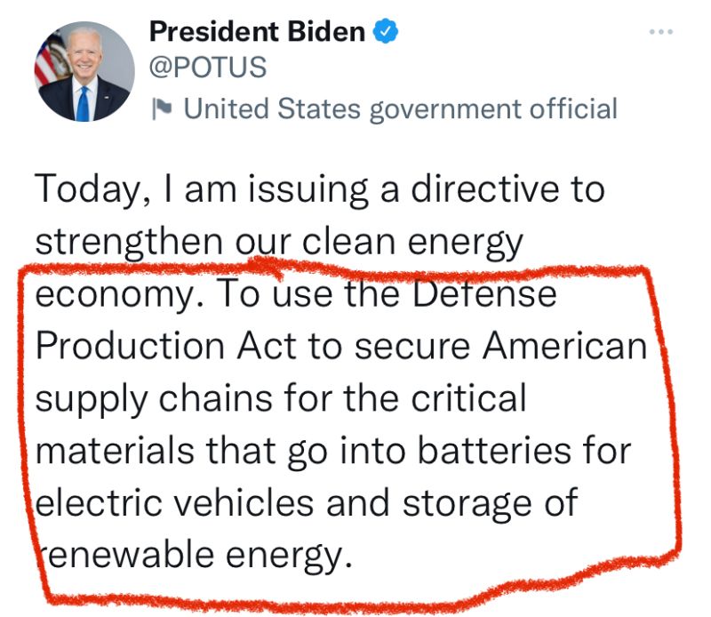 I wonder how about members of Congress and the Biden Administration bought lithium ahead of Biden declaring the Defense Production Act to encourage electric car battery production?