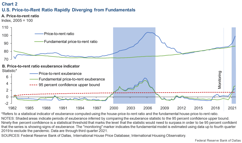 The Dallas Fed also has a price-to-rent chart also showing growing exuberance.