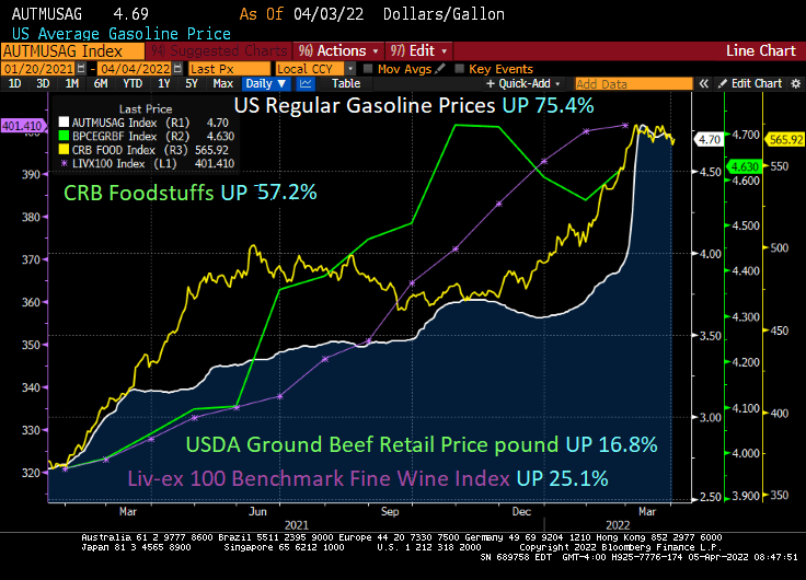 Of course, there are other assets growing at lightning speeds. US Regular gasoline prices are UP 75.4% under Biden. Foodstuffs are UP 57.2% since Biden was installed as President. At least ground beef is only up 16.8% while the fine wine index is up 25.1%.