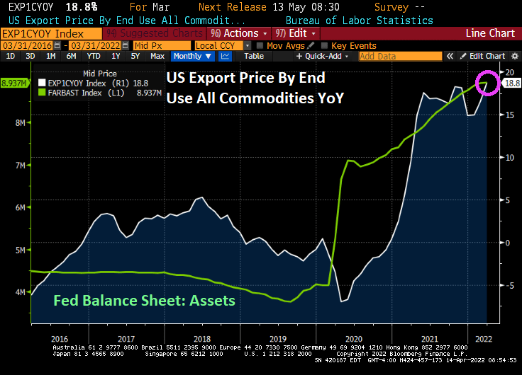 Export prices by end us YoY is up to 18.8%, the highest in recorded history (or since 1983 when they started recording export prices).