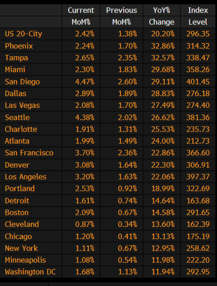 The February Case-Shiller home price indices are out for February and the national home price index rose to 19.80% YoY.
