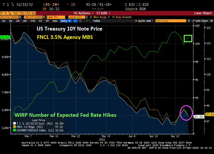 As The Fed is projected to raise its target rate over 10 times by February 2023, 10-year Treasury Note prices and agency MBS 3.5% prices continue to decline.