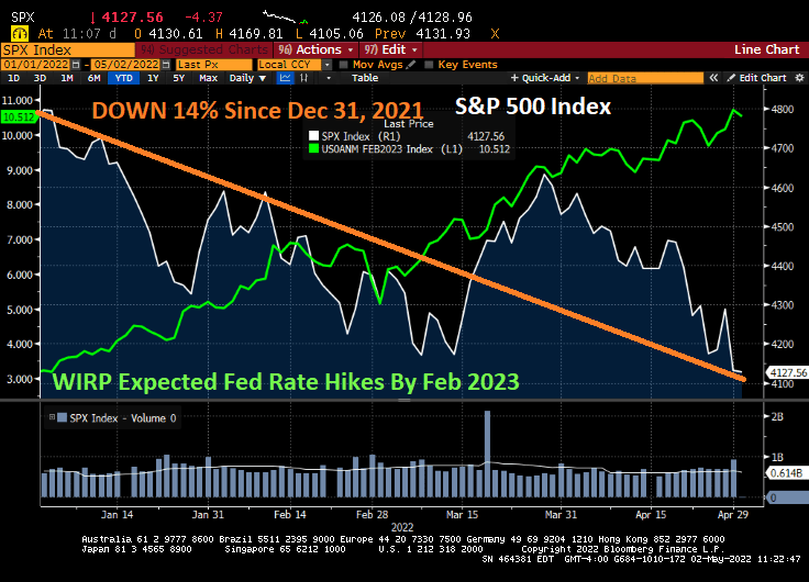 And as The Fed continues to threaten tightening of their monetary follicies, the S&P 500 index is down 14% since Dec 31, 2021.