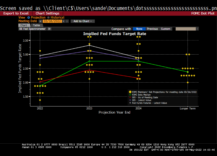The Fed’s Dot Plots shows a cooling of Fed rate hikes by 2024 and beyond.