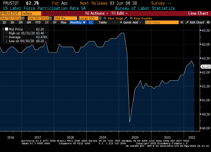 US labor force participation actually declined in April and struggles to get back to levels pre-Covid and Trump.
