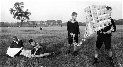 Here is a photo of American children trying to create energy from flying a kite made from progressively devalued US currency.