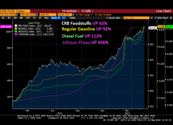 The inflation that is crushing Americans is due to energy and food price increases. That is, the non-core inflation. Under Biden, food is up 63%, gasoline is up 92% and diesel prices are up 112%. But The Fed doesn’t consider food and energy prices, per se.