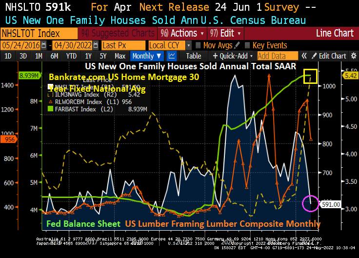 The bad news? US New Home Sales fell -16.6% MoM in April as mortgage rates skyrocketed.