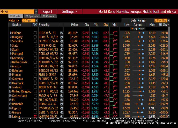 And top of that, the German 10-year Bund rate rose +9.4 BPS this morning, although Finland, Hungary and Slovakia all rose above +10 BPS.