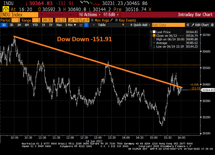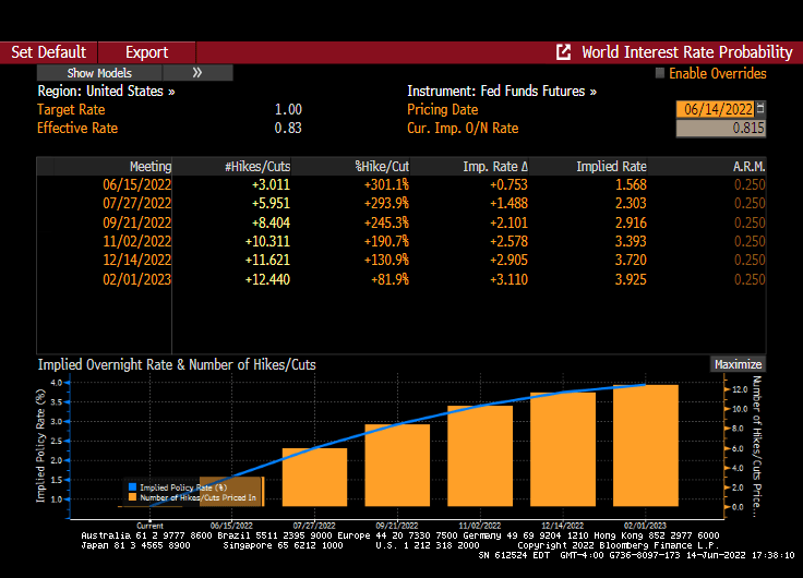 Markets are anticipating an increase of The Fed Funds target rate from 1% to 1.568%, less than the rumored 75 basis point increase being bandied about.
