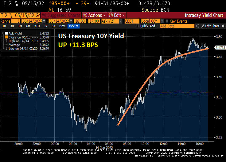 The US Treasury 10-year yield rose … ANOTHER … 11.3 basis points as rumors circulate that The Fed might actually raise their target rate by 75 basis points.