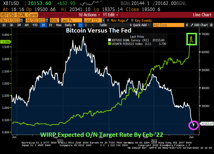 On the good news/bad news front, cryptocurrency Bitcoin fell to $17,600 earlier today before rebounding to above $20,000 as the expectation of further Fed rate increases diminished (Yellen admitted the economy is slowing).