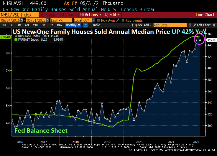 Median price of new home sales rose 42% since May 2021, thanks to Fed stimulypto. And Federal government stimulus spending.