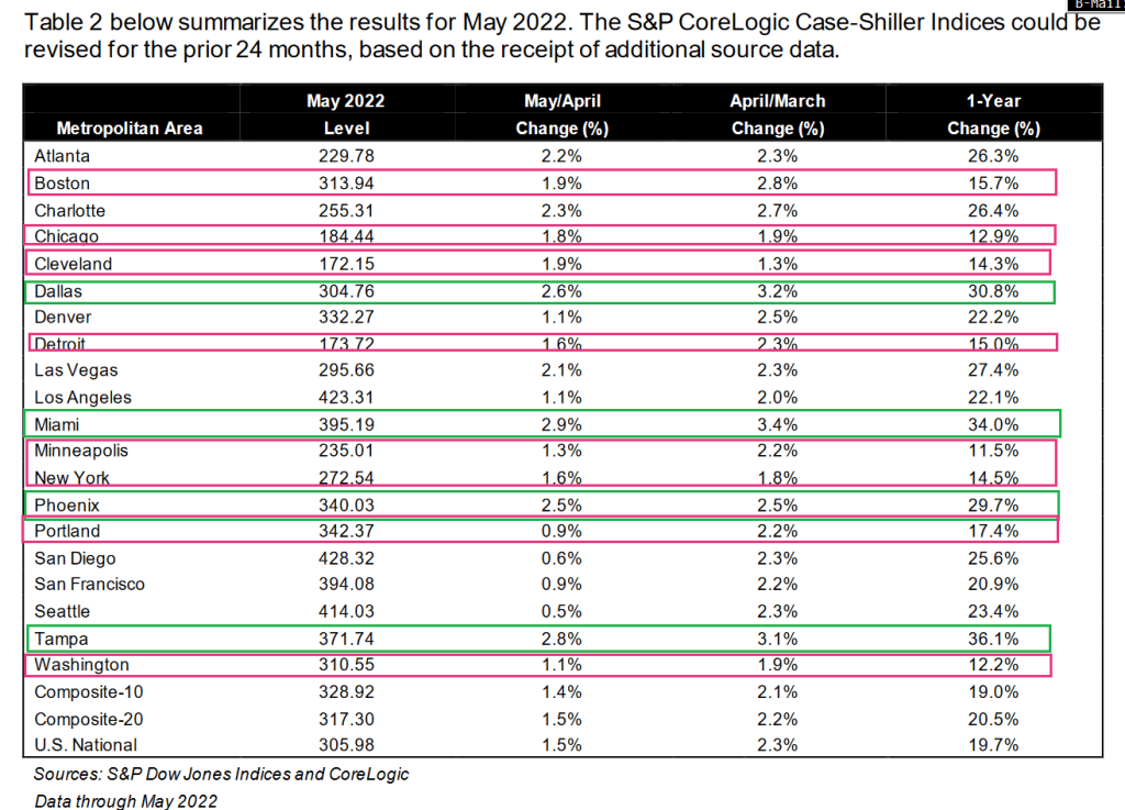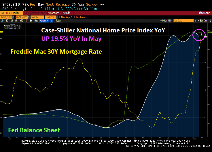 The May Case-Shiller home price indices are out and they’re a doozy. The national home price index rose 19.75% YoY. Why? You can thank The Fed’s “slowhand” approach to withdrawing the Covid-related stimulypto.