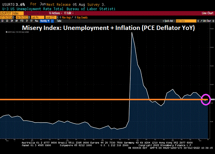 Based on the PCE Deflator YoY and U-3 unemployment, the misery index remains elevated compared to before Covid and The Fed’s/Federal government hyper-stimulypto to counter the Covid economic shutdowns. We never fully recovered.