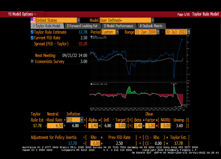 In order to fight inflation, The Federal Reserve is going to have to raise their target rate to … 17.78% based on 6.80% PCE deflator YoY. We are currently at 2.50%.