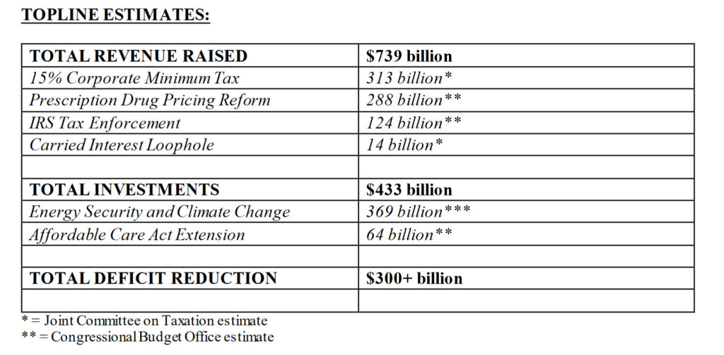 According to Schumer and Manchin, “The Inflation Reduction Act of 2022 will make a historic down payment on deficit reduction to fight inflation, invest in domestic (green) energy production and manufacturing, and reduce carbon emissions by roughly 40 percent by 2030. The bill will also finally allow Medicare to negotiate for prescription drug prices and extend the expanded Affordable Care Act program for three years, through 2025.”