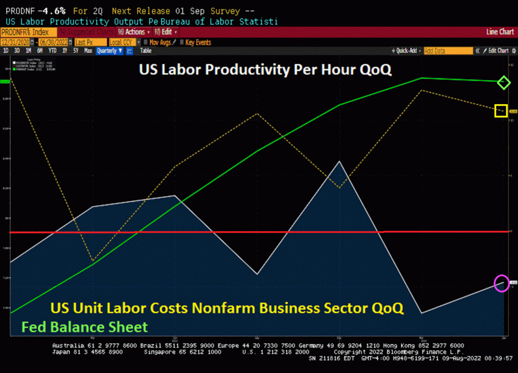 US labor productivity declined in Q2, down -4.6% since Q1. At the same time, unit labor costs continue to soar at a rate of 10.8%.