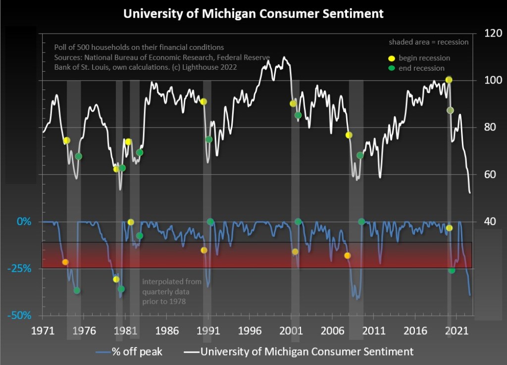 Bear in mind that today’s consumer sentiment reading in the lowest since 1970, lower than during any recession.