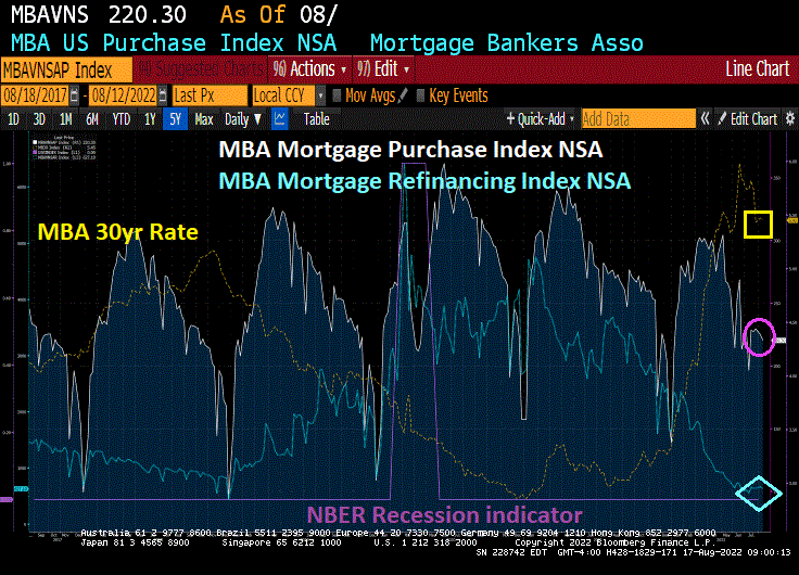 Please bear in mind that we are in the “dog days” of mortgage applications. Purchase applications usually peak in April/May, then it is all down hill until the end of the year.